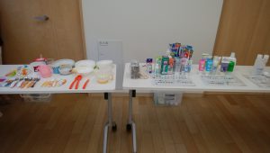 およそ30組のご家族が参加されて、歯科衛生士会の方の製品を展示してのブースは大人気でした。
